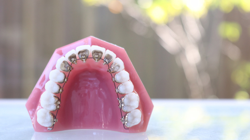 歯にブラケットと呼ばれる装置とワイヤーをつけて、歯やあごの骨に力をかけながら歯を動かし、歯並びを整えていく歯列矯正です。