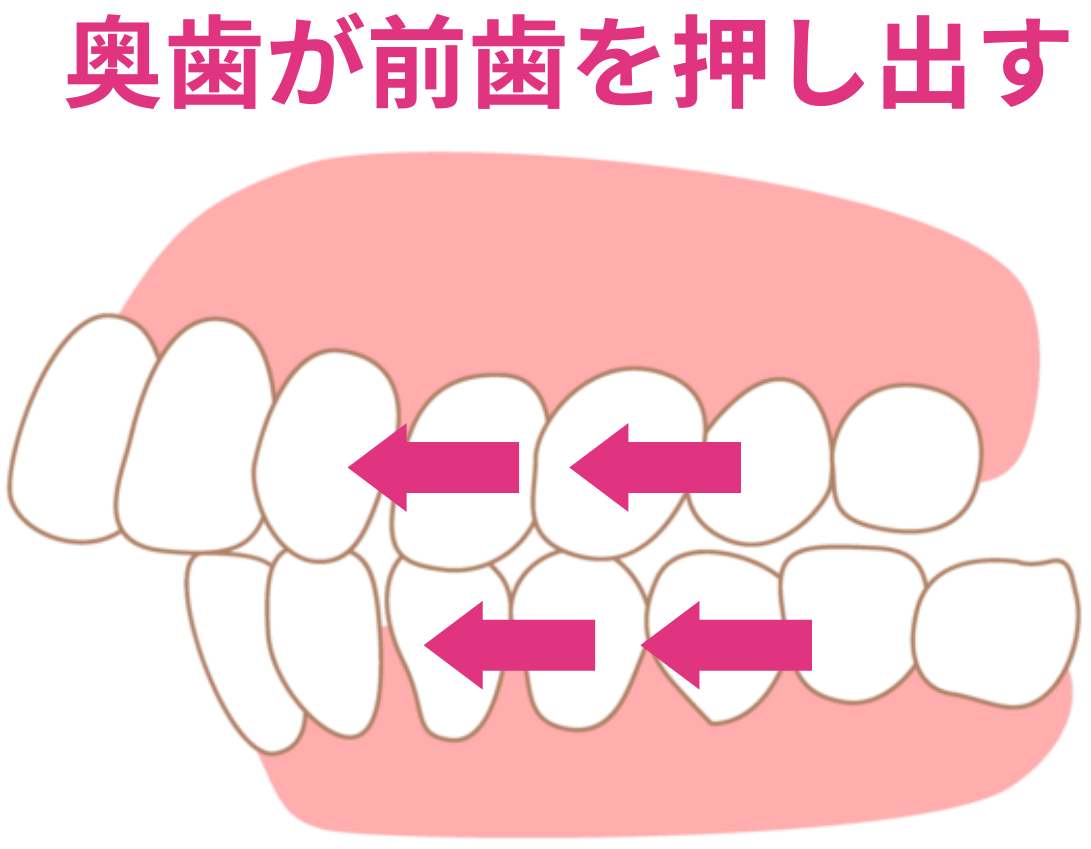 やがてその奥歯が前歯を押し出し、歯並びが悪くなってしまうのです。