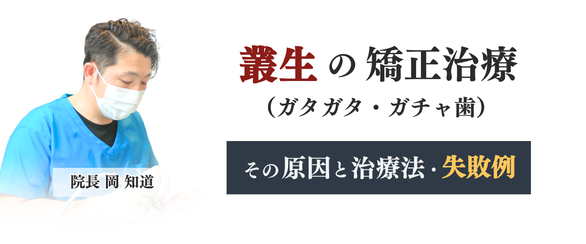 叢生(そうせい)は、ガタガタとかガチャ歯、乱杭歯(らんくいば)ともいわれる、歯と歯が重なってデコボコした症状。
